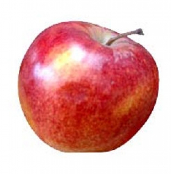 Owoc średniej wielkości do dużego, kulisto-stożkowaty, żebrowany przy kielichu. Skórka średniej grubości, gładka, lekko tłustawa, zielonożółta lub żółta, pokryta niemal w całości bardzo ciemnym, karminowobrązowawym, rozmyto-paskowanym rumieńcem z jeszcze ciemniejszymi paskami. Przetchlinki średniej wielkości (nieco większe i bardziej widoczne niż u Jonagolda), szarawe, niezbyt liczne. Szypułka średnio długa i średnio gruba. Zagłębienie szypułkowe średnio głębokie i średnio szerokie. Zagłębienie kielichowe średnio głębokie i średnio szerokie, nie ordzawione. Kielich średniej wielkości, zamknięty, działki kielicha średniej długości. Miąższ żółtawy, twardy, średnio zwięzły, soczysty, aromatyczny, słodkokwaskowaty, smaczny. Gniazdo nasienne małe lub średniej wielkości, lekko otwarte. Komory nasienne małe, częściowo otwarte. Nasiona długie i wąskie, często źle wykształcone.